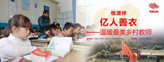 2015年1月30日,由恒源祥商超发起的“亿人善衣”活动正式启动。这是是恒源祥商超紧扣“公益+大爱”全力打造持续性的消费型公益模式,实现一对一实名制买捐赠服务。活动前期“亿人善衣——温暖最美乡村教师”活动摄制组从上海出发来到相隔2780公里外的云南省南涧县乐秋乡的麻栗小学及 开展公益活动前期拍摄工作。活动获得云南省南涧县妇联及云南省妇女儿童基金会大力支持及赞许。