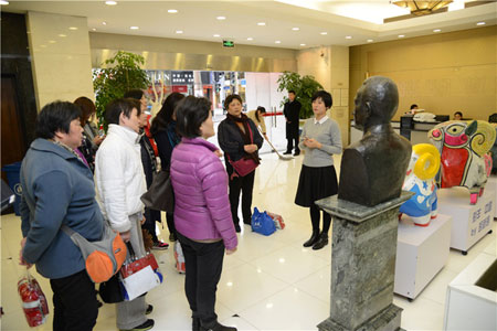 来自恒源祥集团公益慈善中心的副总监朱蕴嘉女士首先带领大家参观了恒源祥集团一楼的文化展示厅及海派基地活动点,讲述了一个绒线王国发展故事,让参观者了解绒线作为舶来品的“前世今生”,展示了由恒源祥与黄浦社区共同搭建的一个高平台、高素质、高文化的工作基地。
