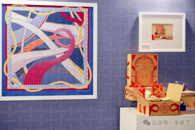 展览第二板块是“恒源祥百年文脉展区”,由恒源祥早期纺织品样本、老包装纸、广告海报等特别呈现带有几何形状和装饰性纹样的展品构成,不仅呼应了Art Deco装饰艺术风格的核心特征,更是恒源祥将传统工艺与现代设计相结合的有力体现。这些展品被设计为“档案墙”的展现方式,以上海当时的历史照片和恒源祥文献档案素材为基础,观众能够直观感受到品牌在城市现代化进程中的重要角色与影响力。这一部分不仅是对历史的回顾,更是对未来发展的展望,体现了恒源祥对推动社会进步与文化发展的责任感。此外,展区内设置了电视屏幕,观众可以观看视频片《“中法绒情 恒久无限”——恒源祥与法国的百年之旅》。恒源祥百年文脉展区以其丰富的历史内涵与现代化的展示手法,为来自世界各地的观众提供了一种跨越时间与空间的文化体验,启发人们对中国文化历史与国际艺术设计风潮融合的深刻思考。