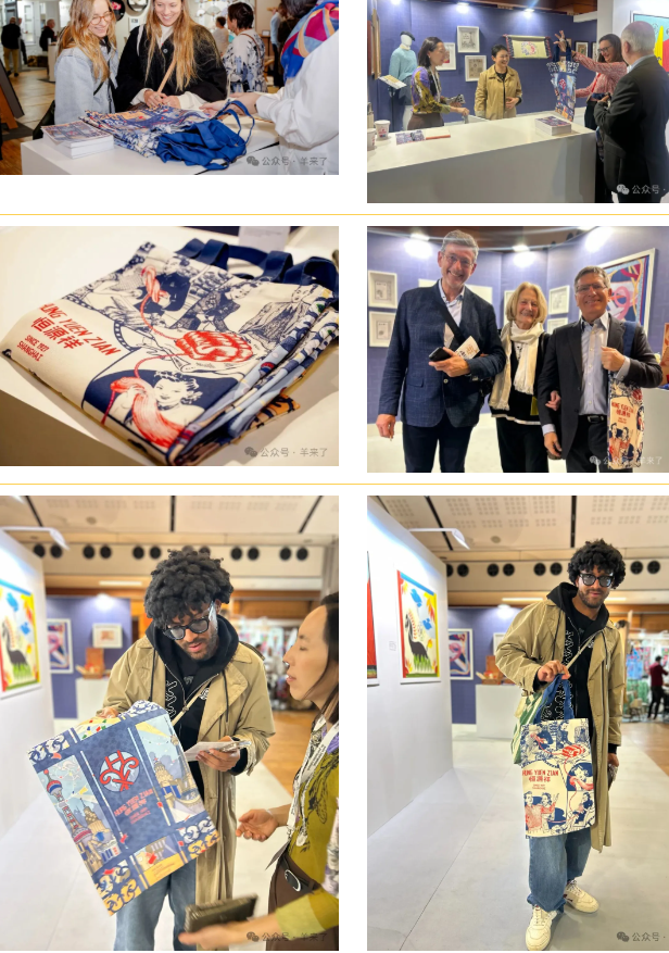 值得一提的是,为本次展览特别设计的两款品牌特色经典时尚帆布袋,深受观众们的喜爱,拥有20万+粉丝的巴黎网红博主Edgar现场购买并展示在社交媒体上。一款是本届展览恒源祥装饰艺术风格主题海报帆布包。另一款的设计源于恒源祥在20世纪30-40年代邀请当时上海知名插画师丁浩创作的系列插画作品,该系列完美交织了恒源祥品牌基因与时代生活纹理,生动展现了20世纪30-40年代上海的时尚场景。通过展现当时恒源祥经营的“双洋牌绒线”“地球牌绒线”与消费者的生活场景,传达了“柔软、耐用、温暖”的产品特质,成为恒源祥“品质初心”的可视化见证。每一幅画面都凝聚了手工编织的温度与时代情感,链接了品牌历史与社会生活,形成跨越时空的文化符号。观众们不仅可以拥有一个具有实用功能的日常物品,更能通过这一产品感受到品牌的历史与情感,让每一次的使用都成为与恒源祥品牌的亲密接触。