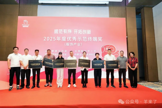 随后,大会为获得"2025年度优秀示范终端"奖项的终端进行颁奖。经过严格的报名、审核和综合评定,一批在终端形象、运营规范、销售业绩等方面表现突出的门店脱颖而出,为彩羊产业的终端建设树立了新的标杆。