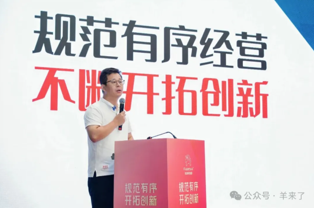 颁奖仪式后,彩羊产业副总经理徐慧围绕"规范有序经营"作专题报告。他指出,面对市场环境变化,彩羊正着力构建标准化的制度体系,通过完善授权框架、强化质量管控、建立知识产权保护机制等举措,实现从生产供应到销售运营的全流程规范管理。他强调,唯有建立系统化的规章制度,构建标准化的运营体系,才能有效防范经营风险,筑牢发展根基,为彩羊产业的持续健康发展提供坚实保障。