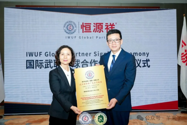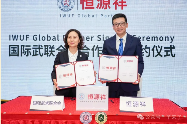10月16日,恒源祥集团续约成为国际武术联合会全球合作伙伴,开启2026-2029年新一周期,继续助力全球武术事业的发展。同时,鉴于恒源祥集团在武术领域十余年来的深耕不辍,深受社会各界的广泛赞誉,国际武术联合会特别授予其“武术国际推广突出贡献奖”,武通天下之道,恒系金石之谊,愿未来双方同心聚力,铸就辉煌。