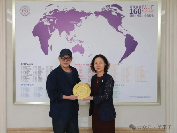 张玉萍秘书长代表国际武联对李连杰先生的到访表示热烈欢迎,并对他长期以来的贡献致以衷心感谢。她指出,自2009年担任国际武联首位形象大使以来,李连杰先生以卓越的国际影响力,持续推动武术文化的全球传播,显著提升了武术在全球范围内的认知度和参与度。她表示,当前武术正处于迈向奥运舞台的重要阶段,国际武联期待与更多像李连杰先生这样的杰出代表携手,共同讲好武术故事、弘扬武术精神,进一步推动武术国际化发展,共促武术早日入奥。