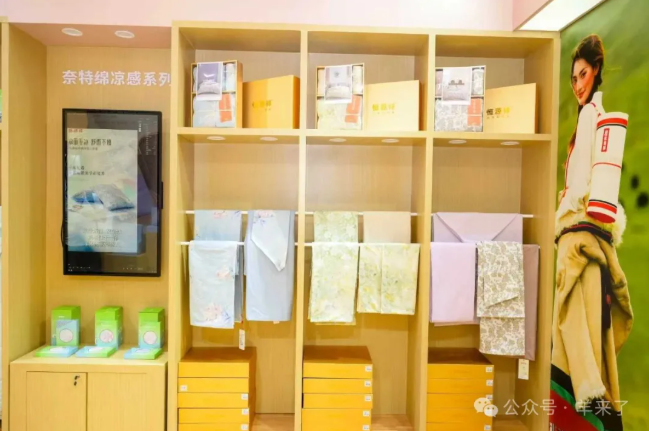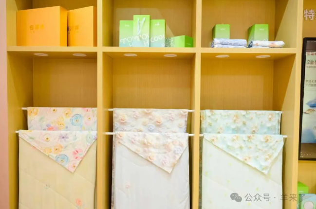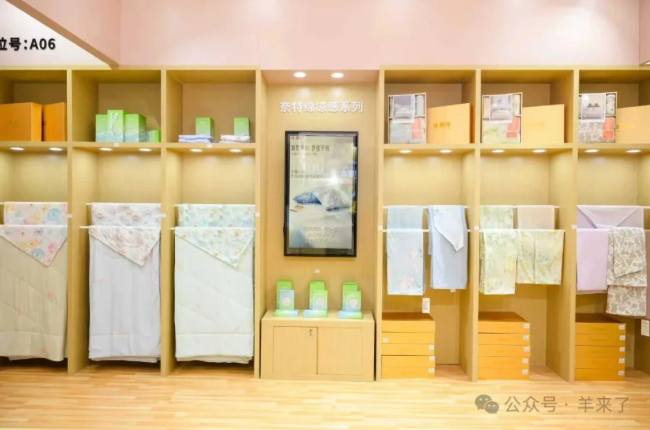 此次展出的“奈特绵”系列新品包括花型多样、满足不同家居风格的套件系列;主打夏季使用的沁凉系列,如:凉感床笠三件套、凉感被等。