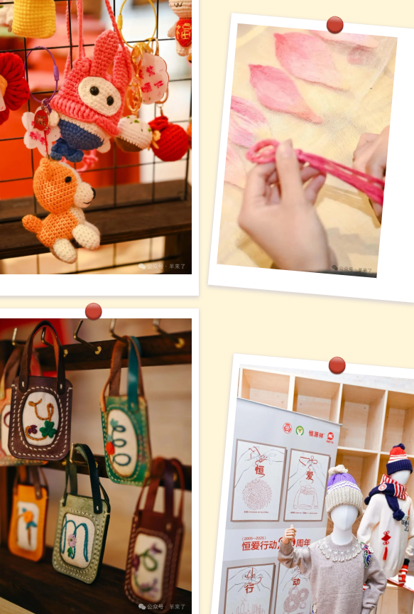 参观过程中,领导们驻足非遗互动区,仔细欣赏了现场展示的海派绒线编结艺术品。一件件精美的绒线花艺术品、文创摆件栩栩如生,精湛的技艺引得大家连连赞叹。得知后续将有恒源祥非遗传承人亲授课程、“小羊织织乐”手作体验等互动活动,领导们表示高度赞赏,认为这种沉浸式非遗体验既能让市民近距离感受传统技艺的魅力,也为都市快节奏生活提供了一方放松身心的文化空间。在“恒爱行动”与“亿人善衣”公益打卡点前,领导们详细了解恒源祥多年来为困境儿童编织爱心衣物的公益历程,以及对乡村师生持续十余年的关爱,对品牌坚持践行社会责任、传递温暖的善举给予充分肯定。