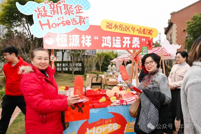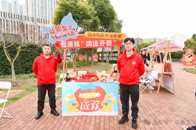 在2026“风尚黄浦·立春启新”系列活动区级示范展示——“文明‘邻集’”立春庙会,在迎“新”聚力 Horse(好事)连“联” ——2026年黄浦区凝“新”聚企系列活动之新春主题集市,恒源祥“鸿运开泰”系列产品通过传递中华传统年节氛围,与其他品牌共同为消费者打造一站式年味体验综合体。