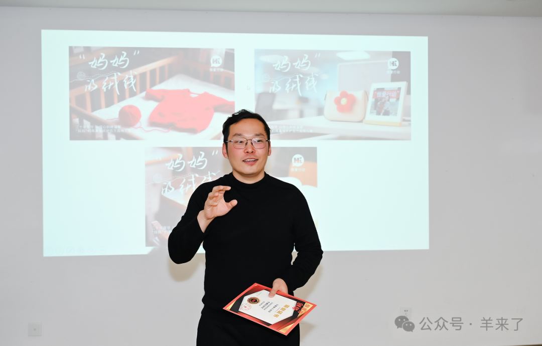活动中,顾红蕾书记为全媒体互动部颁发了“传播特别奖”,集团品牌传播中心联席总经理郭建晨展示了曾获长城奖、黄河奖的“恒爱行动”公益海报,并分享其结合AI创作的背后故事,鼓励通讯员拓展品牌传播思路。