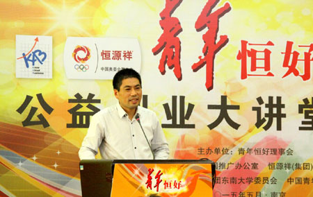 5月21日,由青年恒好理事会主办,KAB全国推广办公室、恒源祥(集团)有限公司和共青团东南大学委员会共同承办的青年恒好公益创业大讲堂在南京东南大学开讲。