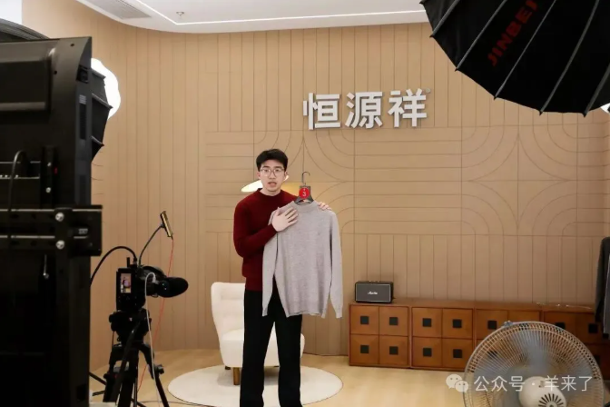 开业首日,店里便迎来客流热潮。多个销售区内,主播达人架起设备开启直播,镜头聚焦恒源祥经典产品,实时与网友互动答疑。