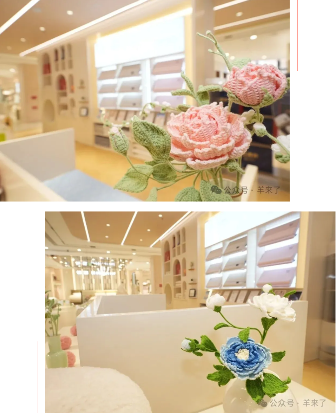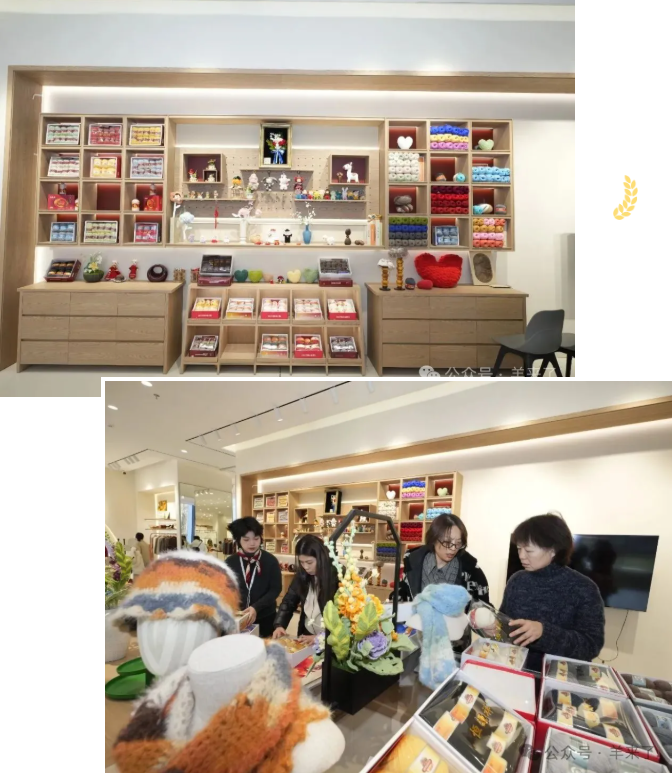 店铺内多处展示了恒源祥绒线编结工艺品,并开辟了专门的绒线编结体验区,带领消费者深度体验海派绒线编织技艺。