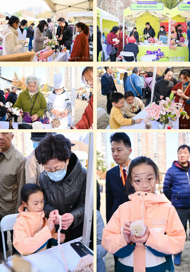 恒源祥集团作为文明单位代表受邀亮相“文化遗产保护传承”版块。由恒源祥传承的两项非遗——国家级非遗“海派绒绣”及上海市级非遗“海派绒线编结”作品在市集展示,现场特设的互动体验吸引了男女老少参与。一只只“暖绒绒”、表情各异的绒线小羊,通过参与者用“绕绒线”的方式徐徐呈现,深受市民朋友的喜爱。与此同时,与“文化遗产保护传承”版块其他单位进行了跨界交流。