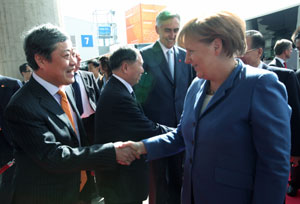 2012年5月7日 刘瑞旗董事长在中德峰会上与德国总理默克尔见面。